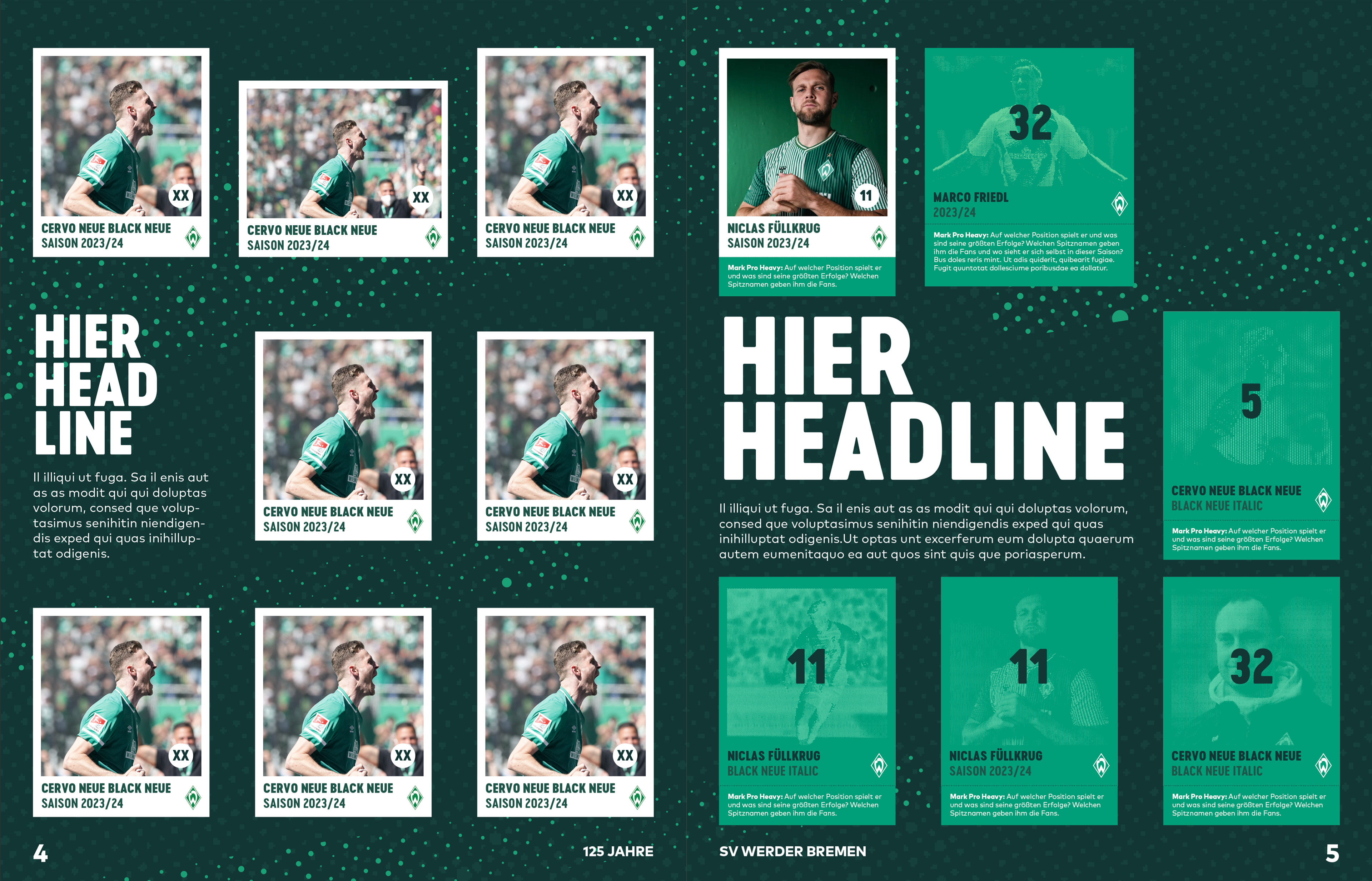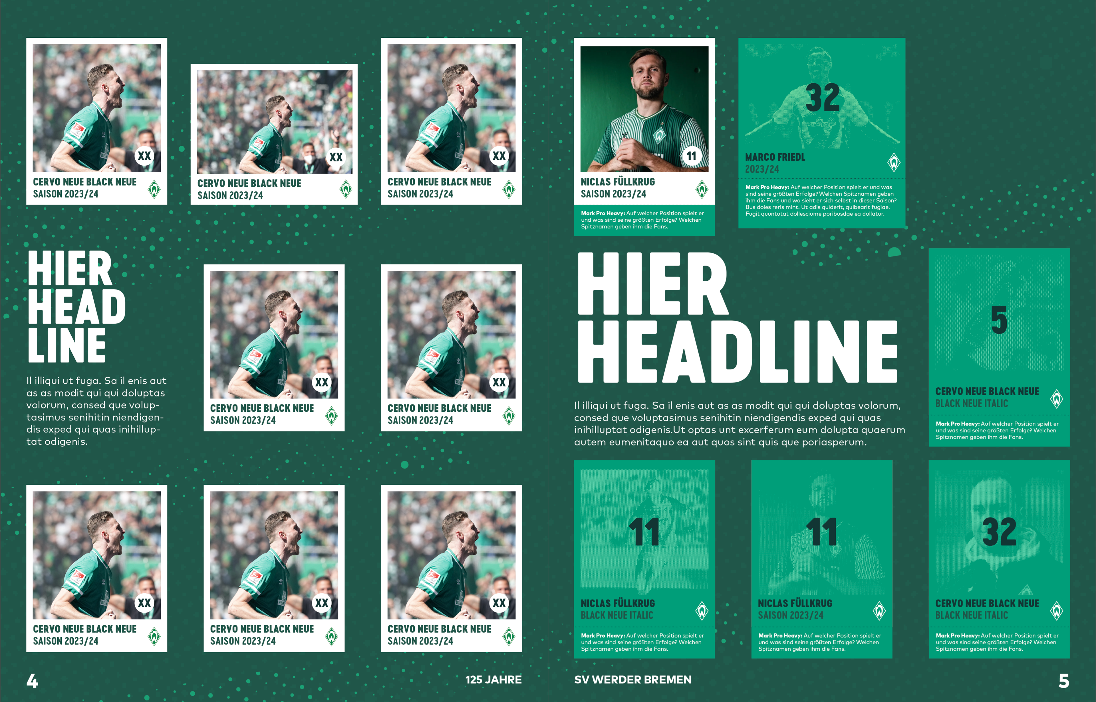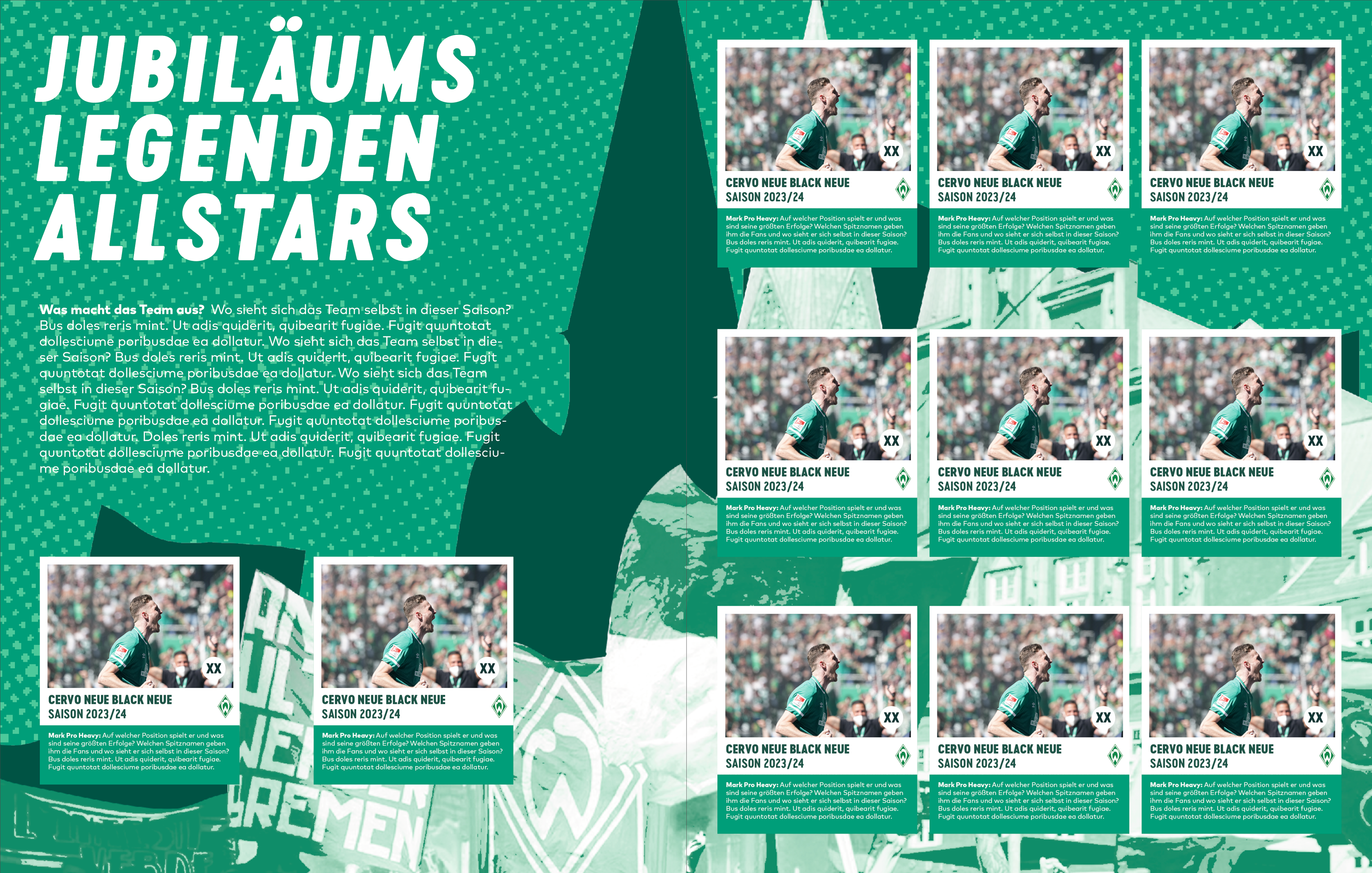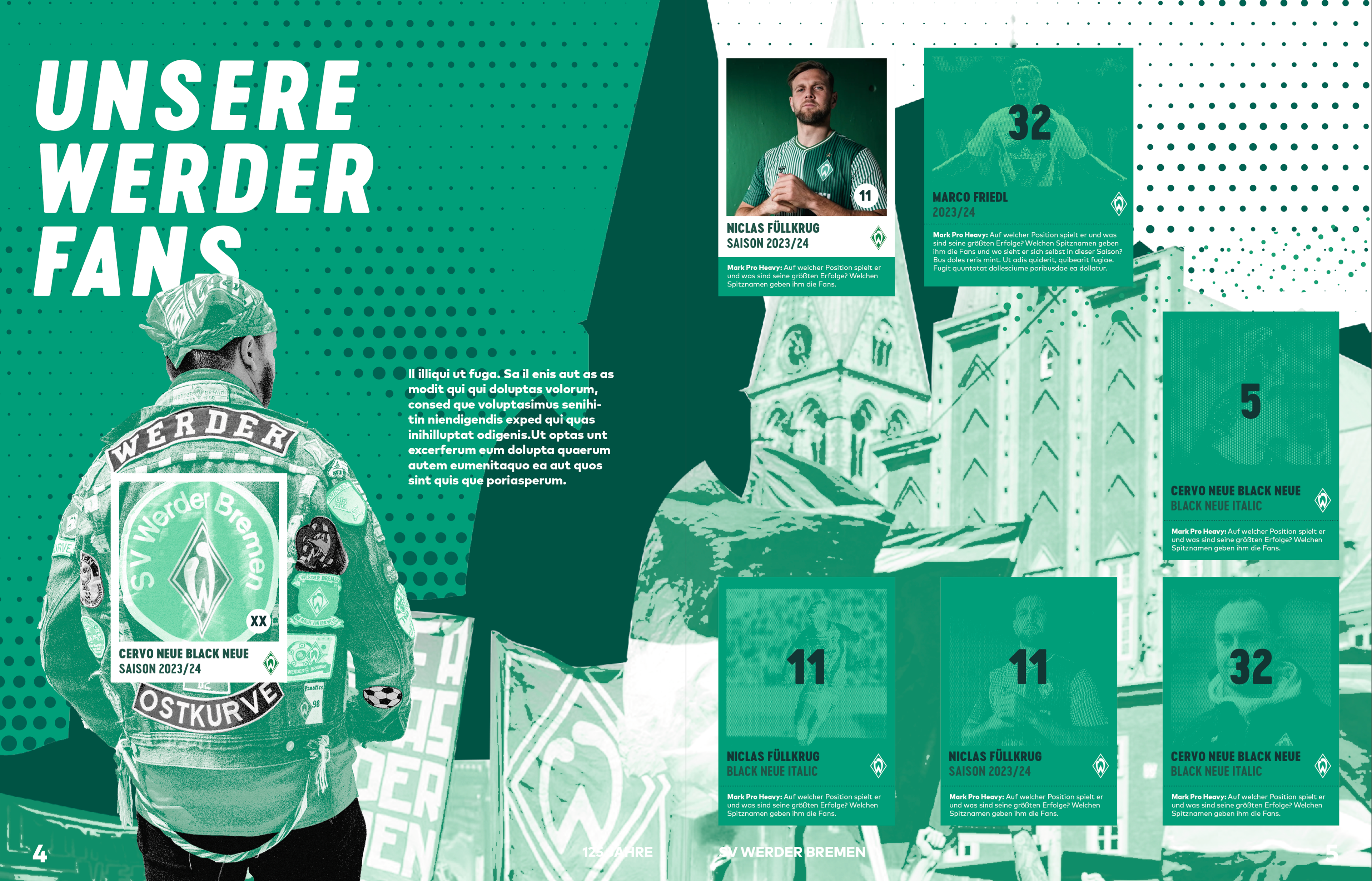 Im Rahmen eines Praktikums bei Rocket and Wink hatte ich die Möglichkeit an der visuellen Gestaltung der 125 Jahres Kampagne für Werder Bremen mitzuwirken. Im Team wurden mehrere Entwürfe angefertigt, die darauf abzielten die Feierlichkeit auf humorvolle und nahbare Weise zu vermitteln. Entstanden ist ein Designmanual das wie ein Baukastensystem funktioniert und der Kreativität Spielraum lässt. Darauf basierend wurden diverse Medien und Formate bespielt.